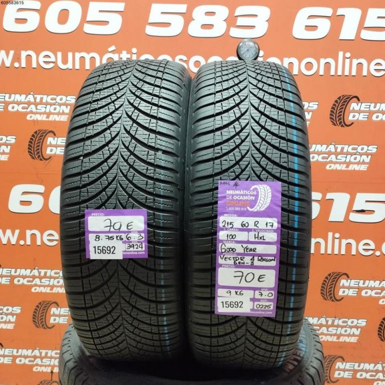2X 215 60 R17 100H XL M+S* GOODYEAR VECTOR 4 SEASON 6.3/7.0MM DOT 3924/0225