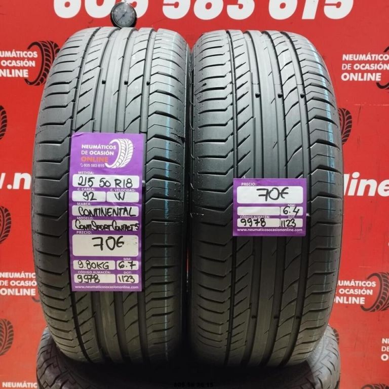 2X 215 50 R18 92W CONTINENTAL CONTI SPORT CONTACT5 6.7/6.4MM DOT 1123/1123